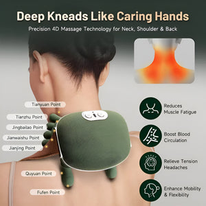 This portable cordless massager combines advanced acupressure therapy + soothing heat for instant comfort and full-body relaxation.